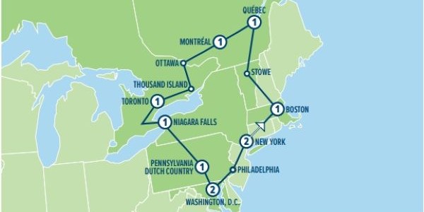 New York City • Boston • New England • Québec City • Montréal • Ottawa • Toronto • Niagara Falls • Gettysburg • Pennsylvania Dutch Country • Washington, D.C. • Philadelphia