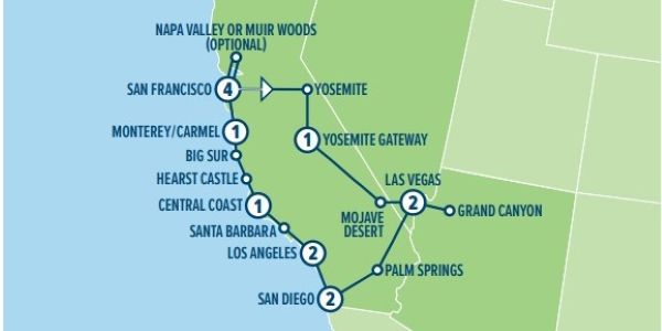 San Francisco • Yosemite National Park • Las Vegas • Grand Canyon West • Palm Springs • San Diego • Orange County • Los Angeles • Malibu • Santa Barbara • Central Coast • Big Sur • Monterey • Carmel